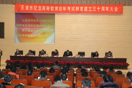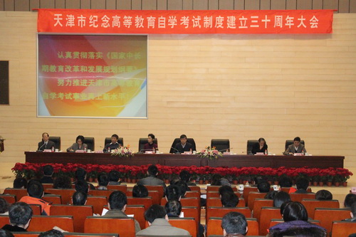 纪念大会由天津市教育招生考试院副院长岳伟主持。市教育招生考试院院长、市教委副主任张静,市教育招生考试院书记岳徳经参加了会议。教育部考试中心主任姜钢出席会议并作了重要讲话,指出 自学考试要主动适应社会发展和终身教育的需求,要以专业和课程改革为核心,推进综合改革与制度创新,确保自学考试质量,加强与各类教育形式的沟通和衔接,切实推动自学考试事业的健康、稳定、可持续发展。