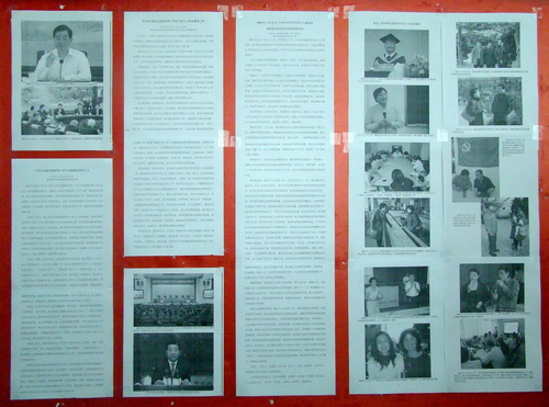 为了展示信息工程学院注重党外人士队伍建设所作的工作,宣传栏还刊出了学院近年来与此相关的照片十二幅,这些照片包括:2009年5月27日,学院召开民主党派座谈会,出席座谈会的王瑞忠(民进成员)、王光艳(民盟成员)、张志宇(民建成员)等,畅所欲言,积极建言献策共谋学院发展大计的照片;主持工作的副院长潘旭华教授(无党派人士)在全院大会上连续第四年提出“两个做强”工作重点的讲话的照片;2011年5月14日,学院党委组织狼牙山红色之旅党日活动,受邀参加的陈刚(民进成员)与刚刚讲完党课的正处级调研员马福忠就党的发展历史展开热烈讨论的照片;2011年7月8日,天津市高校系统校务公开检查评估组来星空调研检查工作,期间到信息工程学院实地调研检查二级单位院务公开工作,并对学院教代会制度、民主管理、民主监督等工作高度肯定的照片;以及2008年以来,学院几任新老领导班子成员与学院各位民主党派人士在学院各项活动中和谐共处亲切交谈的照片。
