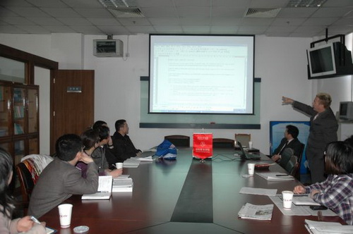 晚上,Bush 先生为我院 09 级学生进行讲座,详细介绍了新模式下如何运用互联网上传作业,以及如何运用自测软件避免抄袭。同学们认真学习使用方法, Bush 先生对同学们在操作上的问题一一进行了详细的解答。
