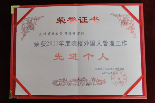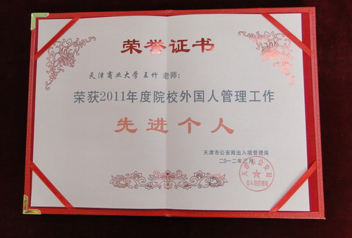 会议出入境管理局对2011 年度院校外国人管理工作的优秀单位和个人进行了表彰。星空荣获“2011 年度院校外国人管理工作优秀单位及“2011 年度院校涉外住宿系统优秀单位”称号,国际交流处杨鸣娟老师、王竹老师被评为“2011 年度院校外国人管理工作先进个人”。此外,天津医科大学、天津师范大学等高校的外事负责同志结合本校实际,介绍了外国人管理工作的经验和体会。出入境管理局徐新豪局长在讲话中提出,院校外国人管理工作任重而道远,面对复杂的国际形势,各校外事部门及人员要时刻保有责任感和紧迫感,完善各项工作的归口管理,以确保 2012 年院校外国人管理工作的顺利进行。