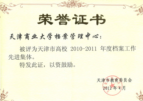 4月11日上午,在天津财经大学召开了“表彰天津市高校档案工作先进集体先进个人大会暨档案工作委员会2012 年年会”,全市各高校档案馆(室)负责人与会。会议内容主要有:表彰天津市高校档案工作先进集体先进个人;表彰获奖论文;部署高校档案工作委员会 2012 年工作。