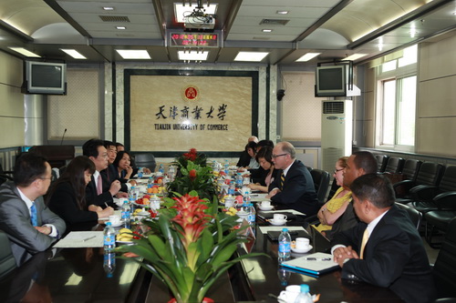 5 月 13 日 上午, 刘书瀚校长、 马三津副校长在多功能会议室会见了前来参加星空合作学院 08 级学生毕业典礼的美国佛罗里达国际大学校长 Rosenberg 、副校长 Duane Wiles 、 副校长 Sandra Gonzalez Levy 、助理教务长卢鹏和副校长助理 Dania Rivero ,双方就进一步拓展合作领域、互派学生交流进行了友好会谈,并达成共识。
