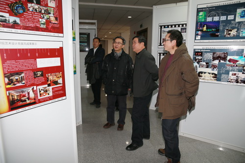 12月20 日下午,校党委副书记在设计学院、校办、宣传部等部门领导陪同下,到新图书馆参观了设计学院2012 年实习作品汇报展览。