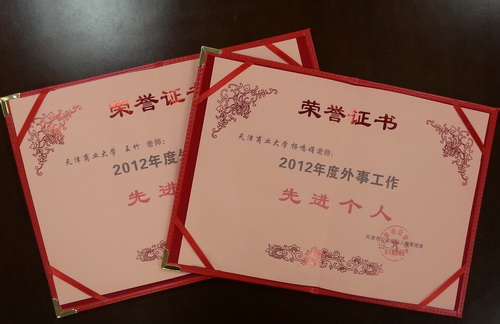 出入境管理局副局长田晓健总结了2012 年度天津市院校系统外国人管理工作,并对 2013 年工作提出了要求,田局长指出:面对复杂的国际形势,院校外国人管理工作任重而道远,各校外事部门及工作人员要时刻保持清醒的头脑,牢记责任感和紧迫感,完善各项工作的归口管理,确保 2013 年院校外国人管理工作的顺利进行。天津科技大学、天津师范大学等高校的外事负责同志结合本校实际,介绍了外国人管理工作的经验和体会。会上,出入境管理局对天津市 2012 年度院校外国人管理工作的优秀单位和个人进行了表彰。星空荣获“ 2012 年度外事工作先进单位”及“ 2012 年度涉外住宿优秀单位”称号,国际交流处杨鸣娟老师、王竹老师被评为“ 2012 年度外事工作先进个人”。
