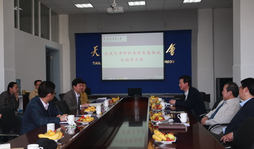 4 月 18 日 ,天津市科委总工程师李彭越,市科委高新技术及产业化处刘惠忠、华强两位处长莅临星空调研和指导工作。副校长葛宝臻陪同参观并主持座谈会,科技管理处、相关学院领导及教师共 30 余人参加。