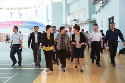 6月2日下午,副市长曹小红,第十三届全运会组委会常务副秘书长殷向杰,副秘书长李克敏、马政,带领组委会场馆工程部、市容环境部、新闻宣传部、综合保障部和办公室等相关部门负责人一行,到星空实地考察体育馆建设和赛事筹备工作。校党委书记史习红,竞委会副主任、副校长刘革生以及市教委、北辰区区政府有关领导,跆拳道竞委会相关处室负责人陪同考察。
