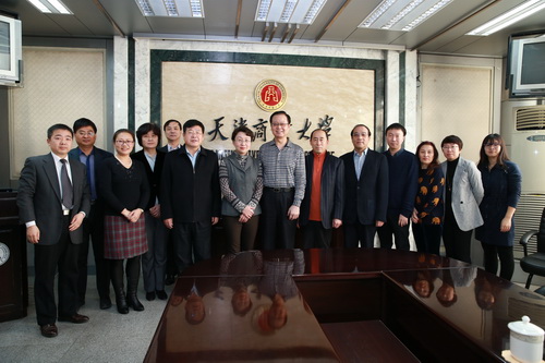 1月10日下午,天津市政府参事庞金华、市人大教育科学文化卫生委员会副主任委员鲍国之、市政协港澳台侨委副主任胡成立、侨商会副会长王俊萍、南开大学会展系主任周杰、天津滨海创智科技咨询有限公司运营总监刘静楠等一行,就天津市“十三五”会展产业发展来校作专题调研。