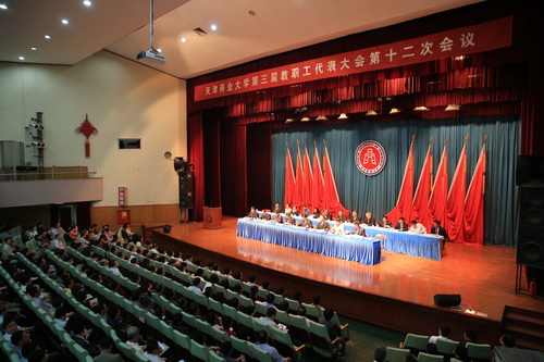 大会听取了校长刘书瀚所作的题为《深化内涵建设,务实创新,推动事业全面发展》的工作报告,报告从教育教学工作取得新成果,学科建设稳步推进,师资队伍建设得到加强,国际化办学取得新进展,和谐校园建设取得新成效,党建工作不断加强六个方面全面客观、实事求是地对学校 2012 年度工作进行了总结。