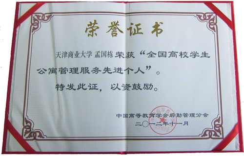 日前,中国高等教育学会后勤分会学生公寓管理专业部2012 年年会暨全国高校学生公寓工作先进单位、先进个人表彰大会在贵阳举行,会议对获得公寓管理服务工作的先进高校和个人进行了表彰。星空学生处副处长孟国栋获得“全国学生公寓工作先进个人”荣誉称号。
