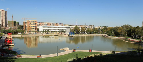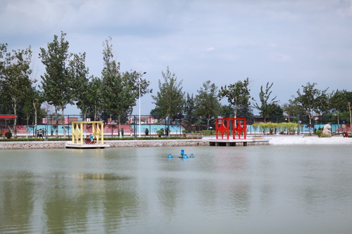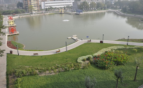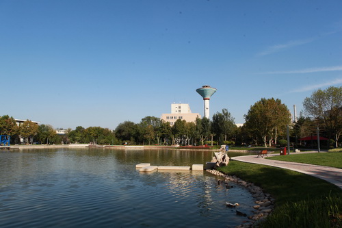 提升后的青年园包括以下景点:中心花坛——竹间揽月、亲水平台——林波倚翠、休闲广场——荷风四面、小坐空间——筑梦台、景观亭组——笑意轩、商字景墙——创业原点、观景石台——清波映翠、雕塑草坪——艺采飞扬、滨水步道——闲庭信步。中心 湖区四周设漫步小道,湖岸四周设花岗岩护栏、石凳、庭园灯等园林设施,湖岸设二处下沉式亲水台阶,为学生提供宜人化的交往空间;同时,在原树木品种的基础上增加了白蜡、金叶槐、国槐、白皮松、柿树、泡桐、红花洋槐、山楂等多品种植物,与中心湖区相得益彰, 形成完整的景观、休闲、生态系统。同时,此次提升工程通过对原青年湖拓宽宽度和增加深度,大大提高了中心湖区的蓄水功能,从而为星空植被绿化提供重要来源。