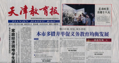 9 月 28 日 ,《天津教育报》在报眼位置以 “ 艺术吐芳,喜迎十八大 ” 为题报道了星空艺术学院的艺术作品展。报道原文:“ 9 月 26 日 ‘艺术吐芳 文化礼赞’星空XK体育艺术学院喜迎‘十八大’艺术作品展开幕。师生们用色彩构筑的视觉画卷表达对党的热爱之情。”