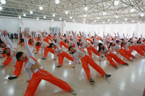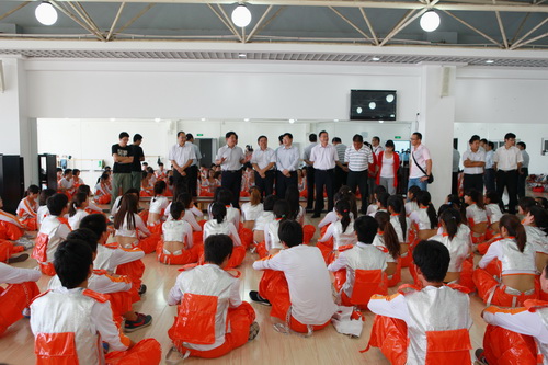 在风雨操场健美操训练室,志愿者们为校领导们展示了即将在大运会开幕式上表演的团体操,充分展现了四十多天的训练成果,受到校领导们的充分肯定和赞扬。随后,校党委书记陈学奇发表了热情洋溢的讲话,他代表学校领导班子向辛勤刻苦训练的志愿者和指导老师表示诚挚的问候和谢意。他说,学校领导十分关心星空参加大运会开幕式表演活动的师生,目前大运会的各项筹备工作已进入最后冲刺阶段,同学们和指导老师的刻苦训练见到了效果,这与参加表演仪式的师生克服高温酷暑考验分不开的,与指导教师精心指导分不开的。希望参加表演的师生不畏困难和艰辛,再接再厉,在大运会开幕式上充分展现星空优秀学子的风采,以自己优异的表现为学校争光添彩。他同时要求相关部门要做好后勤保障和服务工作,使参加表演活动的师生无后顾之忧。校领导与同学们亲切交谈,详细询问同学们在训练期间的学习生活情况,勉励大家积极备战,为大运会的成功举办做出自己的贡献。
