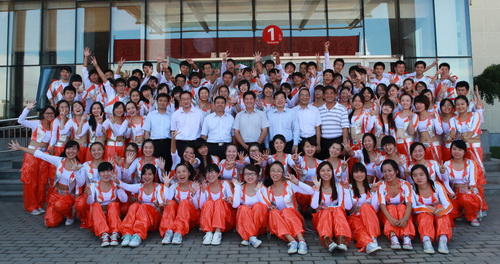 9 月 3 日 下午,在距中华人民共和国第九届大学生运动会开幕还有五天之际,校领导陈学奇、杨万义、邱立成、路波来到校风雨操场慰问了星空参加第九届全国大运会表演仪式的师生,校办、学工部、团委、体卫部、宣传部等有关部门负责同志一起参加了慰问活动。