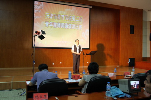在迎接教师节带来之际,天津市教育工会于9月8 日,在市总工会六号会议厅举行了天津市教育系统第二届青年教师师德演讲比赛。全市教育系统通过层层选拔共有35 名高教、普教的青年教师参加了比赛。星空工会选送了在全校青年教师师德演讲比赛获第一名的艺术学院教师王涛参赛,他演讲的题目是《平凡的人生,伟大的事业》。他以学生关注老师带病坚持工作的细微之处切入,对“师德”这一主题抒发了心中的真情实感,他的演讲声情并茂、情理交融,绘声绘色,举例生动,视角新颖,给人启迪,得到评委的认同,最终获得三等奖。
