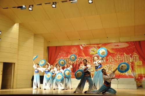 为庆祝建党九十周年,弘扬全市高校后勤职工热爱党,热爱祖国,为教育事业的进步与发展无私奉献的精神面貌,市教委后勤处、市高校后勤协会于 6 月 29 日在音乐学院举办了全市高校后勤系统庆祝建党九十周年文艺汇演,星空后勤管理处的 2 个节目——舞蹈《万泉河水清又清》、合唱《走向复兴》被选为参演作品。