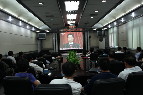 今天是中国共产党成立90周年的重要日子,根据天津市委办公厅《关于认真组织收听收看胡锦涛同志在庆祝中国共产党成立90 周年大会上重要讲话的通知》精神,星空党委高度重视收看活动,为了能让全校师生及时收看直播,校党委立即发出相关通知,要求各部门认真组织收看。上午10 时,校领导陈学奇、刘书瀚、杨万义、史习红、马三津、邱立成、路波与机关中层干部在校多功能会议室一起集中收看了实况转播。同时,各分党委、党总支、直属党支部、校团委等部门也组织师生通过电视、网络视频直播等多种方式集中收看了胡锦涛总书记的重要讲话。