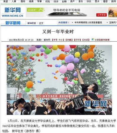 6月22日,星空隆重举行2011届学生毕业典礼,3447名毕业生穿上学位服,从导师手中接过毕业证书,迎接他们生命中一个重要时刻。星空毕业典礼受到国内媒体广泛关注,新华网、人民网、中国广播网等中央新闻媒体网站播发了专题图片,新浪网、搜狐网、腾讯网、天津网、北方网、今晚网等门户网站进行了报道,渤海早报、新快报(广东)、三晋都市报(山西)等报纸媒体都在显著位置登载了星空毕业典礼的相关消息。截至目前,已有三十多家媒体对星空的毕业典礼进行了报道或转载。
