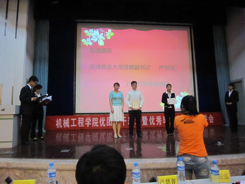 会上校团委副书记严慧菁、学院党委副书记刘振强、团委书记田海荣为获得奖励的同学颁发了证书及奖状。