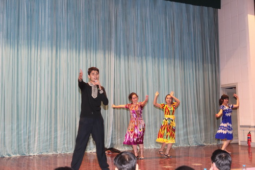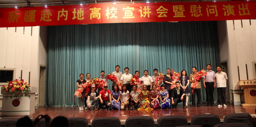 校党委副书记杨万义致欢迎词并讲话。宣讲慰问团团长阿布来提·阿不力孜做了专题慰问宣讲报告。宣讲报告后,慰问团演职人员和星空新疆籍少数民族学生共同进行了精彩的慰问演出。演出赢得了同学们的阵阵喝彩。此次慰问演出活动使新疆籍少数民族学生更加深切的感受到党和国家的亲切关怀。