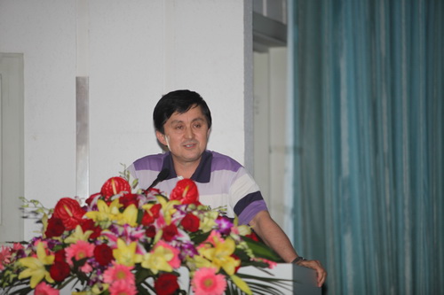 宣讲慰问团团长阿布来提•阿不力孜作做报告