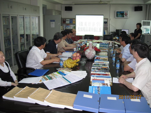 5月27 日,经过长期精心准备,经济学院《微观经济学》校级精品课建设授受校内外专家组验收。受星空XK体育委托,以南开大学张彤玉教授为组长的专家组一行 5 人,对经济学院申报的《微观经济学》课程进行了入校考察。专家组听取了课程组的工作汇报,审阅了教学文件及教学资料,浏览了课程网络资源,进行了随堂听课,组织了学生和教师座谈会,听取了师生意见。通过考察,形成以下评审意见: