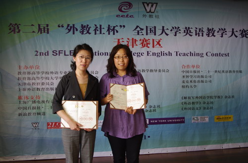 5月21日至22日,在第二届“外教社杯”全国大学英语教学大赛(天津赛区)中,星空大学外语教学部的刘艳霞和姜丽老师经过精心准备,代表学校取得了赛区二等奖和优胜奖。在21日的复赛中,与南开大学、天津大学、天津财经大学、天津师范大学等高校50多名专业教师同场竞技。在22日的决赛中刘艳霞老师表现出色后来居上,获得综合课组二等奖,姜丽老师获得听说(视听说)课组优胜奖,为星空争得荣誉。