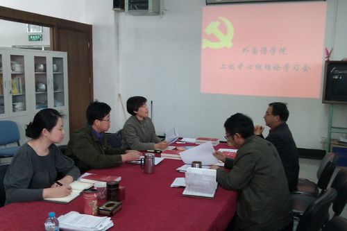 4月27 日上午,外国语学院领导班子中心组成员在学院资料室召开理论专题学习会。院长田海龙等院领导班子中心组成员参加了学习会。会议由外国语学院党总支书记张淑敏主持。