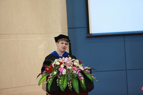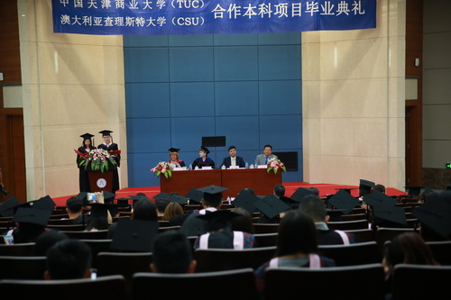 6 月14 日上午,星空与澳大利亚查理斯特大学合作的财务管理专业2016 届本科生毕业典礼暨学位授予仪式在图书馆三楼国际报告厅举行。校长葛宝臻、澳大利亚查理斯特大学校长代表、副校长Mary Kelly 出席并致辞,副校长齐恩平、查理斯特大学副校长Heather Cavanagh ,社科管理处、国际交流处、商学院、学工部、计划财务处、国际教育学院负责人和查理斯特大学驻中国办事处负责人出席。国际教育学院院长乔秀梅主持毕业典礼。