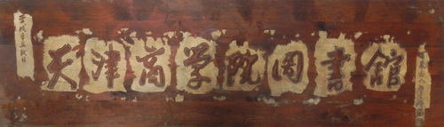 4 月15 日档案管理中心收到“天津商学院图书馆”横匾。该横匾由老干部处捐赠,横匾制作于1982年,书写者为辛亥革命志士、中央文史馆馆员、著名书法家孙墨佛。