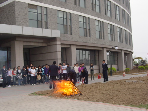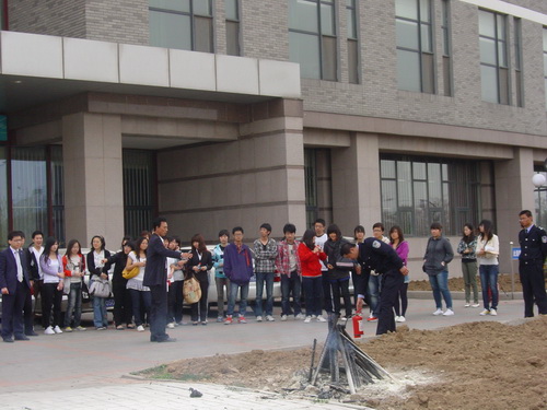 最后王处长带领校义务消防队为合作学院辅导员、学生班干部,进行了一场消防器材实际使用演练。