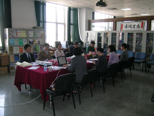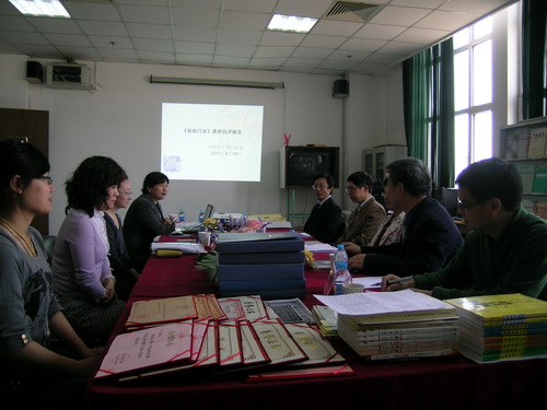 下午 ,专家组组长张敬茹教授宣布评估工作开始,教务处处长于义良教授作简短致辞,《基础日语》课程组负责人章莉副教授向专家组汇报了课程建设情况。之后,专家组审阅了教学文件及教学资料,浏览了课程网络资源,进行了随堂听课,并分别组织了教师和学生座谈会,进一步听取了师生意见。
