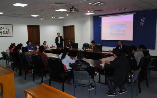 女王大学的客人参加了由教学质量监控中心、国际交流处在图书馆二楼会议室召开的留学见面会,部分有出国意向的学生参加了会议。