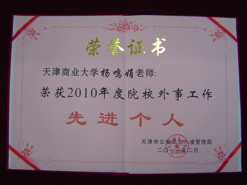 4月14日,天津市公安局出入境管理局在师范大学召开了“2011 年院校外国人管理工作会议”。天津市公安局出入境管理局副局长李树彬对我市教育系统 2010 年外国人管理工作进行了总结,布置了 2011 年的工作任务。会上,出入境管理局对 2010 年院校外国人管理优秀单位进行了表彰,星空荣获“2010 年度院校外事工作优秀单位”,“2010 年度院校涉外住宿系统优秀单位”,国际交流处杨鸣娟同志被评为“2010 年度院校外事工作先进个人”。这是星空自 2005 年以来第五次被天津市公安局出入境管理局评为优秀单位。