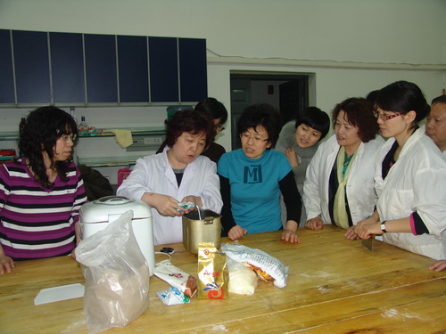健康生活我做“煮”,校工会举办了《女教职工大讲堂》之“面点烘焙制作培训班”于 3 月 24 日 在新 1 号实验楼烘烤实验室开办第一期,学习了面包制作。由生食学院食品系食品工艺教研室主任李楠教授亲自培训,从面粉的选购、原料的配比、面包造型、工艺流程等技术要求进行详细的讲解,同时结合家庭用的面包机进行了实际操作。学习的教师们抱着能为家人奉献美味佳肴而快乐的做“煮”。接下来还要学习蛋糕、曲奇饼制作。女教工插花培训班也将开班。在这春天里《女教职工大讲堂》系列讲座为教师们课余生活增添美丽的色彩。