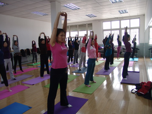 为缓解压力,舒展身心,校工会在三八节期间举办了《女教职工大讲堂》之“瑜伽培训班”,于 3 月 16 日 在学校健美操房正式开班,由星空体卫部教师亲自授课。此项活动受到女教工追捧和青睐,有近 120 余人参加训练。为满足大家的要求不得已将原每周 3 天的训练时间调整为每周 5 天,每班学员由 30 人增加到 40 多人。瑜珈作为当今最时尚流行的健身方式之一,已然受到广大教职工欢迎。工会为体现服务教职工,丰富文化生活,让时尚休闲娱乐活动走进了广大教职工的生活,在校园里享受瑜伽运动带给我们的快乐、健康、优雅、美丽。让这种幸福伴随大家改善亚健康,愉悦身心、增强素养。