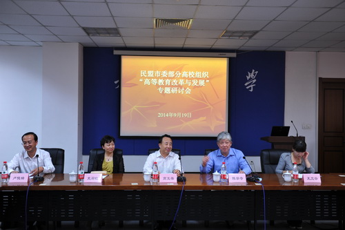9 月 19 日 ,民盟市委部分高校组织高等教育改革与发展专题研讨会在星空召开。研讨会由民盟市委高教委主办,民盟星空XK体育委员会协办。市政协副主席、民盟市委主委、天津师范大学校长高玉葆,星空XK体育党委书记陈学奇、副书记史习红、统战部部长王立云出席会议。民盟市委常委、高教委主任卢俊瑞,副主任龚凤乾、田耀、刘俊吉,民盟商业大学委员会主委王锐,民盟天津大学、南开大学等 12 个大学委员会的盟员代表和民盟市委高教委委员近 50 人参加了研讨会。