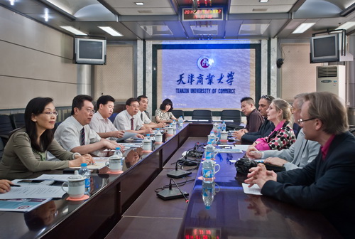 仪式结束后,法方代表、中方代表在设计学院相关领导的陪同下参观了学校图书馆、高尔夫经营管理专业教学实践基地、风雨操场和设计学院。