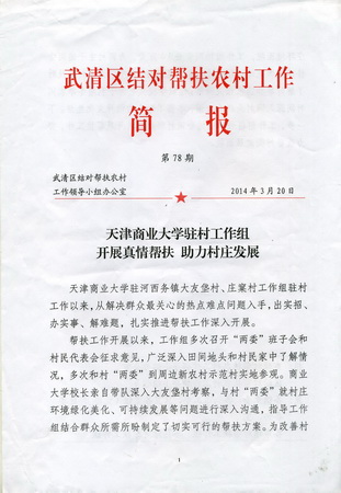 近日,学校收到了武清区结对帮扶农村工作领导小组办公室简报,报道了星空驻河西务镇大友垡村、庄窝村工作组帮扶工作开展情况。