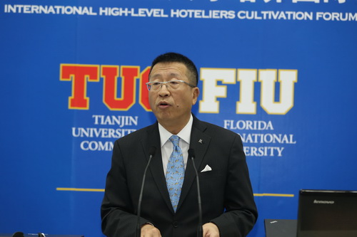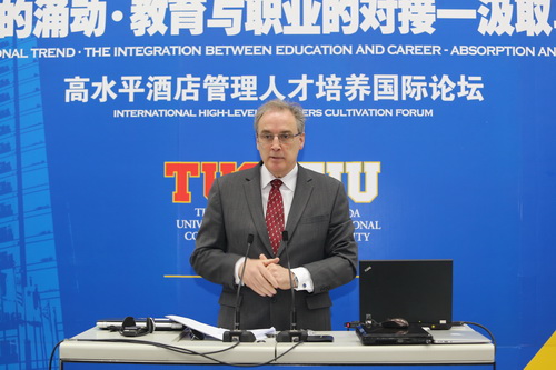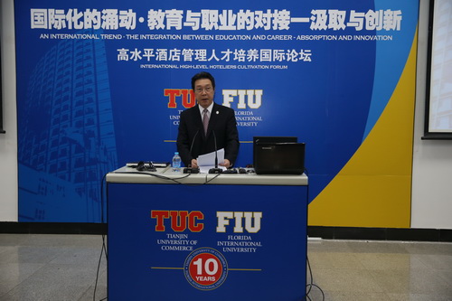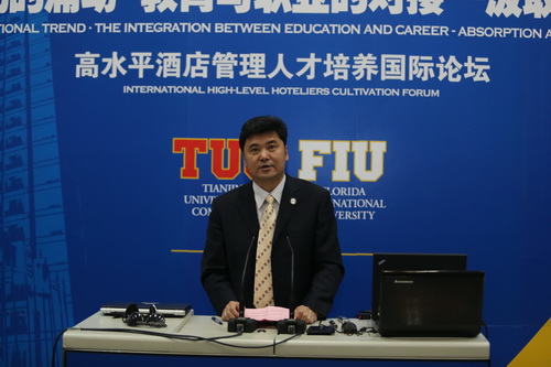 刘书瀚校长在演讲中回顾了中美合作酒店项目的发展历程 。他认为,伴随着国际旅游业的快速发展, 国际化的管理人才供不应求, 我们培养的学生保持着相当高的就业率, 普遍受到业界好评, 这充分证明在经济全球化的背景下, 国际化的人才必须用国际化的教育资源培养。十年合作,我们始终坚持选择优质的酒店管理专业品牌 ; 坚持计划内招生 , 确保生源质量; 坚持专业教师队伍的国际化; 坚持专业建设与社会需求岗位相对接,与酒店业国际大品牌建立了稳定的合作机制; 坚持将中外合作领域作为事业发展重点配置资源, 建立了国际化的国际教育交流中心,而更为重要的是通过我们的合作创造了一个被教育界充分认可的成功模式。