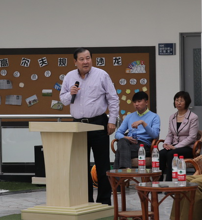 校长刘书瀚在致辞中指出,高尔夫经营管理系呈现出良好的发展势头,是学校“特色兴校”的重要教学成果。五年来,高尔夫经营管理系组建了“双师资”教学团队,形成了“双课堂”教学模式,取得了丰硕的成果。2013 年,该系总结完成《高尔夫经营管理人才对接社会需求的研究与实践》的相关成果,获得四年一度的天津市教学成果奖。在专业教师指导下,由毕业班学生策划并组织的“星空杯校友省亲高尔夫邀请赛”已成功举办三届,得到社会各界的广泛好评。在2013 年高尔夫国家级裁判考试中,该专业四名学生获得国家级高尔夫裁判资格,填补了天津地区没有高尔夫国家 A 级裁判员的空白。这些成果的取得是与天津市高协以及各高尔夫球会的鼎力支持分不开的。学校以天津市高尔夫产业的健康发展为己任,时刻都将高尔夫经营管理系视为天津市高协和各高尔夫球会的培训与科研基地,力求为天津市高尔夫产业的发展做出更大的贡献。