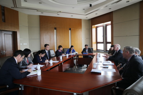 会谈前,英国利物浦约瀚摩尔斯大学Nigel Weatherill 校长等一行四人参观了高尔夫经营管理专业教学实践实训基地、国际教育交流中心、图书馆等。