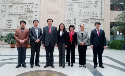 3 月27 日下午,韩国信韩大学对外协力处处长金善凤等一行四人访问星空,国际教育学院直属党支部书记乔秀梅、公共管理学院院长孙钰、国际交流处副处长王玉婧等在图书馆二楼第三会议室与金善凤处长一行围绕互派学生学习,师生间短期交流、教育教学领域等方面科学研究事宜进行了友好会谈,并达成共识。