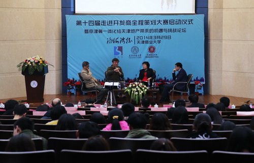 本次地产论坛的主题为“京津冀一体化给天津地产带来的机遇与挑战”,由业界人士、专家学者两个专场组成。谷俊青教授主持论坛,业界人士季艳、朱江、尹世瑜(天津布兰德新摩尔企业策划咨询有限公司总经理)、左志超(天津市渤海湾房地产开发有限公司商业销售策划经理)从市场的反应对公司的影响、公司的战略调整及对策、对前景的信心等方面发表各自意见;专家学者张宏武(天津市土地资源与房屋管理局特聘科技专家)、张树德(星空XK体育教授)、王伟(星空XK体育教师,博士)从房地产行业发展的特点、京津冀一体在国家层面的发展定位及历史回顾、中外都市圈发展比较的启示等方面发表的各自观点。