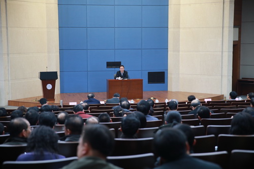 2 月 22 日上午,学校召开中层干部会,对2014 年工作安排提出指导意见。校领导刘书瀚、杨万义、史习红、马三津、邱立成、葛宝臻、路波出席。全体中层干部参加。校长刘书瀚主持会议并讲话。