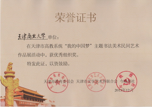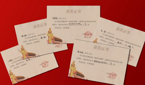 近日,在由天津市教育委员会、天津市文学艺术界联合会、今晚报社主办,天津市美术家协会、天津市书法家协会、天津市民间文艺家协会、天津职业大学文学艺术联合会承办的“我的中国梦”主题书法美术民间艺术作品展活动中,星空设计学院教师积极投稿,共提交 16 件作品,取得了优异成绩,其中,肖培金老师的《雪景寒林吟诗图》及乔雨林老师的《深秋的雨 浙北写生》荣获一等奖,陈月君、王峻立、孔睿老师的 3 件作品获得三等奖,郑红、庄雪阳、于坤、范顺、王若老师的 5 件作品获得优秀奖。星空获“优秀组织奖”。