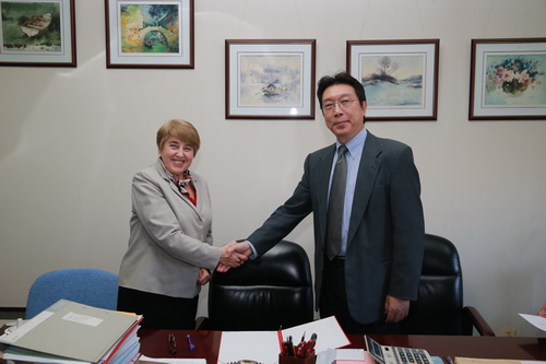 波兰罗兹大学是一所有着60 多年历史的知名公立大学。在校生人数超过4.7 万,每年国际学生数超过600 人。索菲亚副校长介绍了罗兹大学情况,并表达了罗兹大学进行国际化发展的愿望,并热情地邀请刘书瀚校长访问罗兹大学。刘书瀚校长向客人介绍了学校的基本情况和近年来国际化发展的初步成果,并详细阐述了学校国际化发展的理念。同为经济学领域的专家,刘书瀚校长与索菲亚教授就许多专业领域内的问题交换了看法。最后,刘书瀚校长热情邀请索菲亚教授前来参加将于明年5 月在星空举行的“中法国际论坛”。