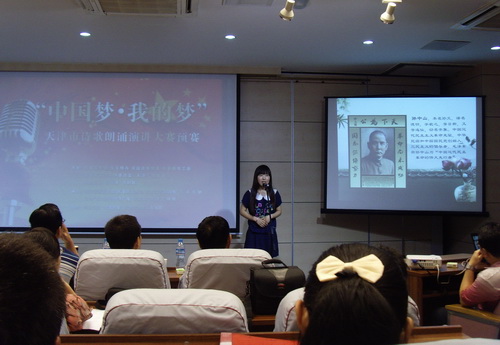6 月 20 日 下午,天津市教育系统“中国梦 我的梦”诗歌朗诵演讲大赛在天津大学举行,来自全市教育系统40所普通高校、高职院校代表选手参加了比赛。马克思主义学院马克思主义中国化研究专业12级研究生张新欣代表星空参赛,在演讲、故事、讲述比赛组中获得佳绩,与南开大学代表队并列一等奖,将于近期代表星空参加全市“中国梦 我的梦”诗歌朗诵演讲大赛。