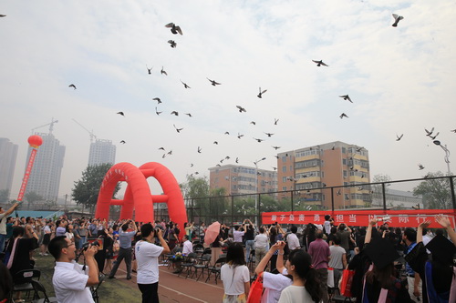 随着嘹亮的《星空XK体育校歌》响起,毕业典礼进入尾声。一只只载满学子梦想和希望的白色和平鸽飞向天空,象征着全体2013 届毕业生满怀自信与憧憬,即将展翅高飞,奔向灿烂辉煌的明天,这一刻,内心成功的喜悦和对未来人生的无限向往化为了毕业生脸上幸福的笑容,这一刻,母校的美丽景象和师生深厚情谊化为永恒将永远深藏在毕业生的心中。