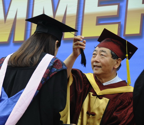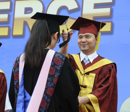 校长刘书瀚为毕业生颁发毕业证书、学位证书并拨流苏
