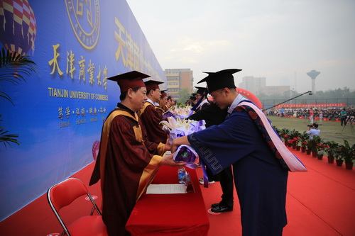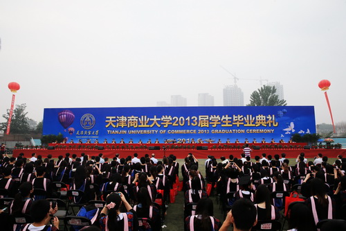 在庄严的国歌声中,毕业典礼正式开始。副校长葛宝臻代表校学位评定委员会宣读2013届学生学位授予情况决议。校长刘书瀚发表了热情洋溢的讲话,对2013 届毕业生表示祝贺并鼓励他们在人生新的征程中要“坚定理想,立志报国;诚信立世,自强不息;与时俱进,锐意创新;心系母校,共求发展。”